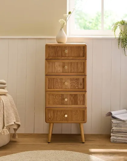 Chiffonnier 5 tiroirs avec façades lamellées h100 cm - ava