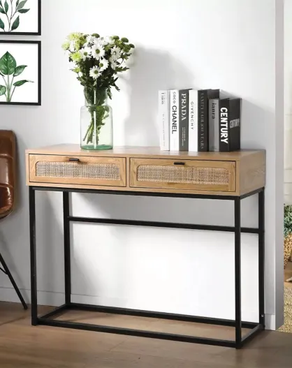 Console 2 tiroirs avec cannage rotin l100cm - jaya