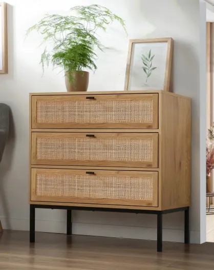 Commode 3 tiroirs façade rotin l80 x p39 cm - jaya