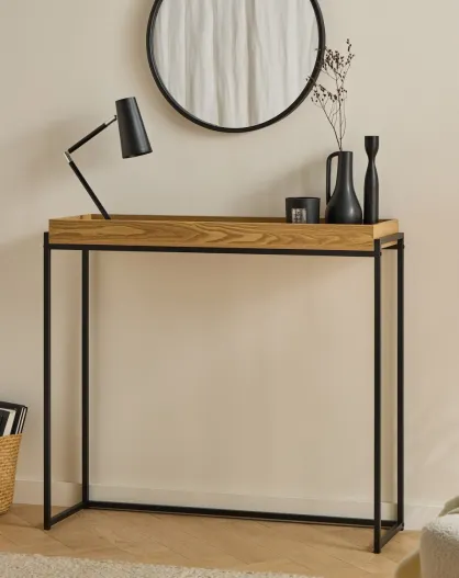 Console avec plateau à rebords et pieds en métal noir l100 cm - jessie