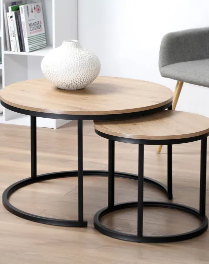 Lot de 2 tables basses gigognes rondes l70 cm - lenny