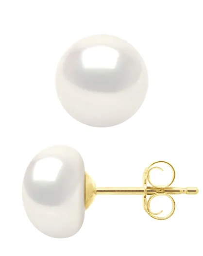 Boucles d'Oreilles en Vermeil Perles de Culture d'Eau Douce Boutons 8-9 mm