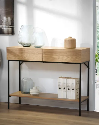 Console 2 tiroirs 1 tablette décor bois - l100cm