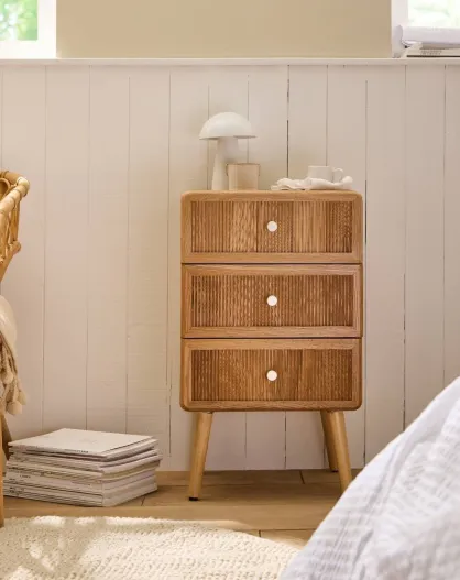 Chevet 3 tiroirs avec façades lamellées h71 cm - ava