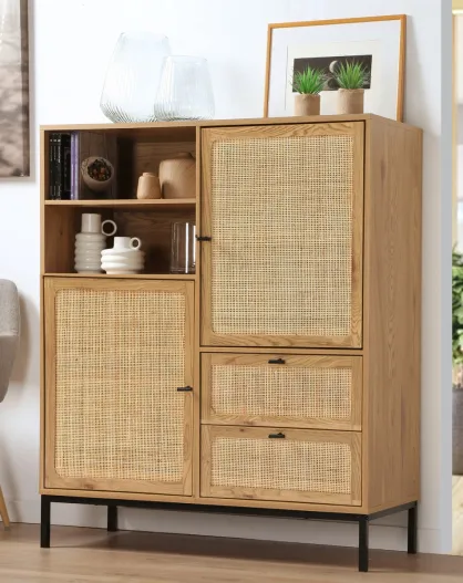 Buffet haut avec façades en rotin naturel - l100 x h120 cm - jaya