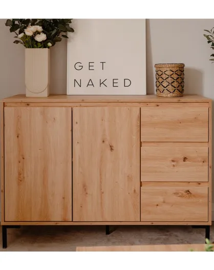 Buffet 2 portes 3 tiroirs et 1 étagère l120 cm - plock