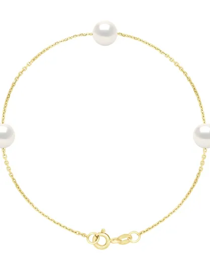 Bracelet en Vermeil 3 Perles de Culture d'Eau Douce Rondes 7-8 mm Blanc Naturel