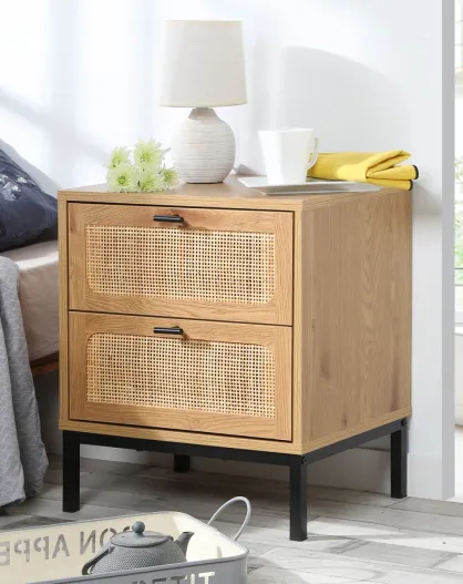 Chevet 2 tiroirs avec cannage rotin h51cm - jaya