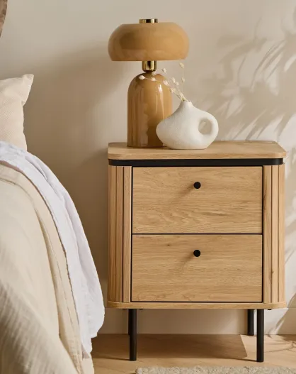 Table de chevet 2 tiroirs avec côtés effet rainuré h55 cm - malaga