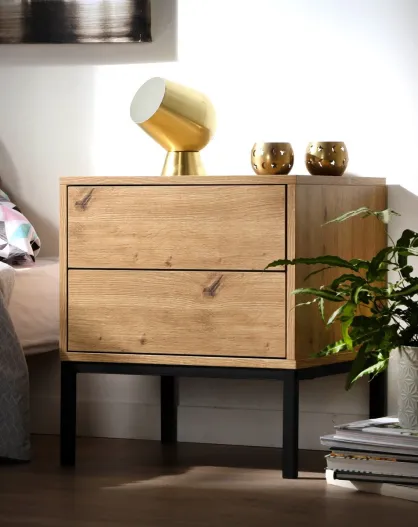 Table de chevet 2 tiroirs décor chêne h50 cm - lenny