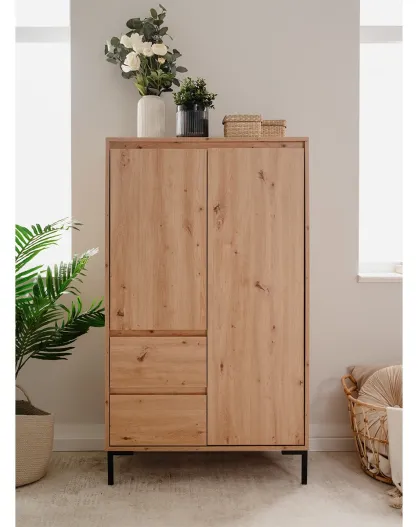 Buffet haut 2 portes 2 tiroirs et 2 étagères h139 cm - plock