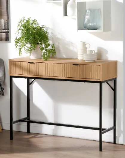 Console 2 tiroirs façade effet bois rainuré l100 x h80 cm - tara