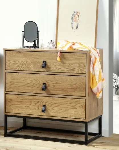 Commode décor chêne 3 tiroirs piétement métal - jill