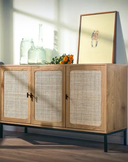 Buffet 3 portes cannage rotin l120 cm - jaya