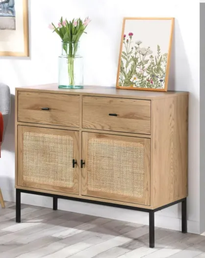 Buffet 2 portes 2 tiroirs avec cannage rotin l90cm - jaya