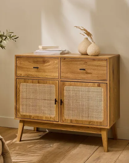 Commode 2 portes en rotin et 2 tiroirs l90 cm - alia