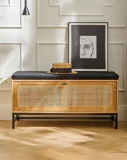 Banc d'entrée avec rangements, façade en rotin l100 cm - jaya