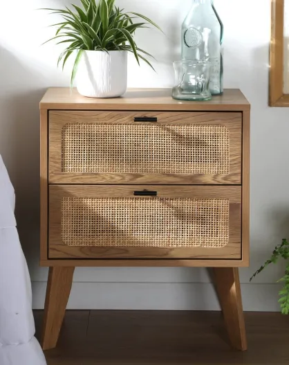 Chevet 2 tiroirs décor bois avec façades en rotin l45 cm - alia