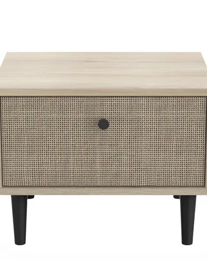 Chevet 1 tiroir décor chêne - impression rotin et noir mat l44,6 cm - saïgon