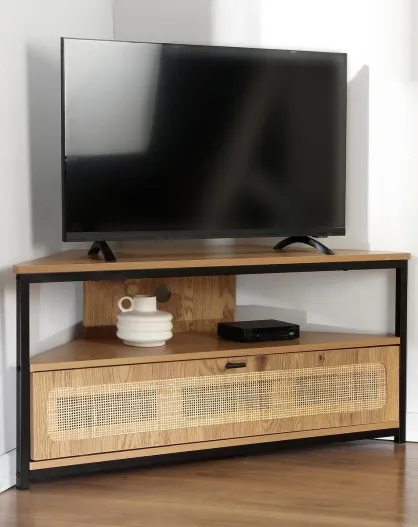 Meuble tv d'angle 1 porte avec cannage rotin l100 cm - jaya