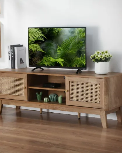 Meuble tv 2 portes en cannage rotin l140 cm - palmo