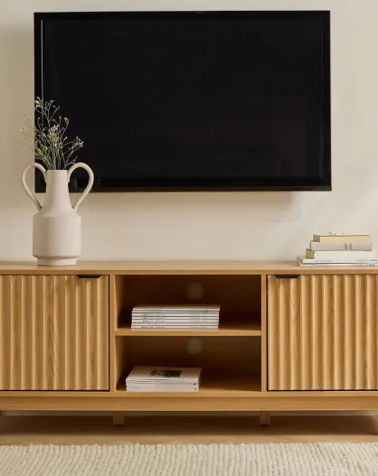 Meuble tv 2 niches et 2 portes aux façades effet vague l140 cm - bologne