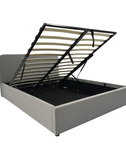 Lit coffre 140x190 cm en tissu gris avec tête de lit et sommier - ysée