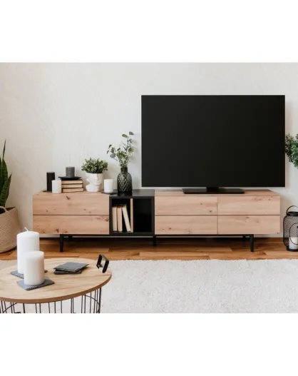 Meuble tv 3 portes 2 niches l195 cm - nola