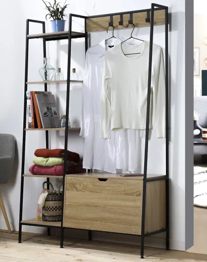 Penderie 5 étagères avec coffre à chaussures et patères - lexie