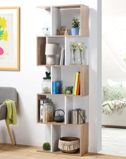 Bibliothèque multi-cases h180 cm - décor bois et blanc