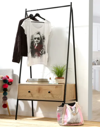 Penderie en métal noir avec 1 tiroir décor chêne h170cm - jill