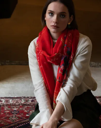 Grande étole en Laine éco-responsable Evy rouge - 100x200 cm
