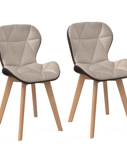 2 Chaises Gladys en tissu taupe/marron - 46x50x79 cm