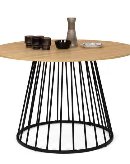Table à manger ronde Adelle bois/noir - 110x110x75 cm