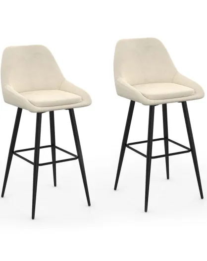2 Tabourets de bar Olivia assise velours crèmes - 44x46x92? cm