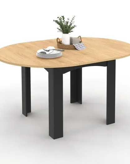 Table à manger ronde Dina bois/noir - 110/150x110x75 cm