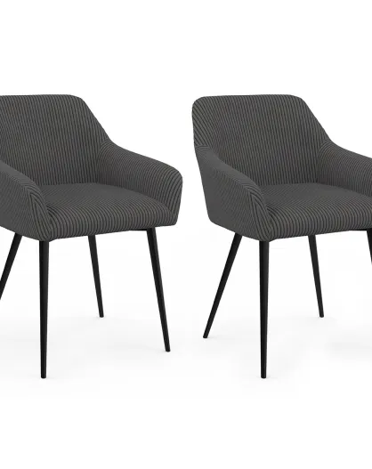 2 Chaises Jenny avec accoudoirs en velours côtelé gris foncé - 51x56x76 cm