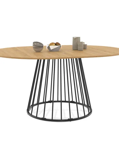 Table à manger ronde extensible Adelle bois/noir - 110/150x110x75 cm