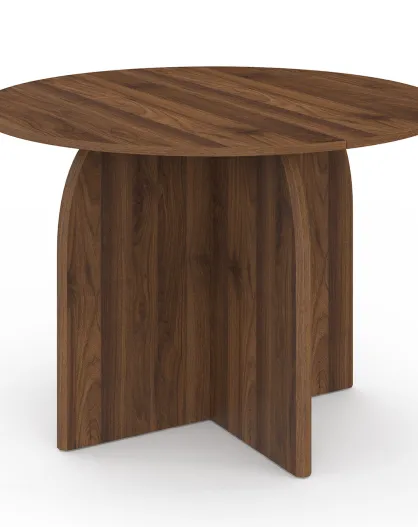 Table à manger ronde extensible Japandi bois effet noyer - 110/150x110x75 cm