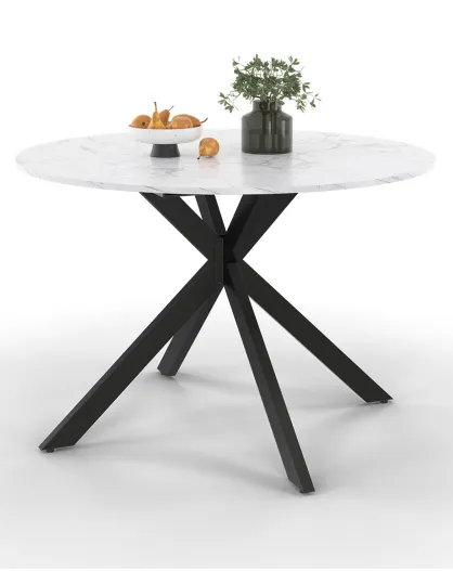 Table à manger ronde extensible Soline aspect marbre blanc/noir - 110/150x110x76 cm