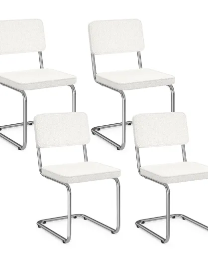 4 Chaises Naya en bouclette blanches - 44x52x79 cm