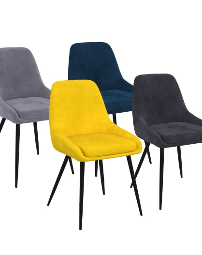 4 Chaises Olivia en velours jaune/gris clair/gris foncé/bleu - 47.5x54x79 cm