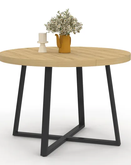Table à manger ronde extensible Sana bois/noir - 110/200x110x75 cm