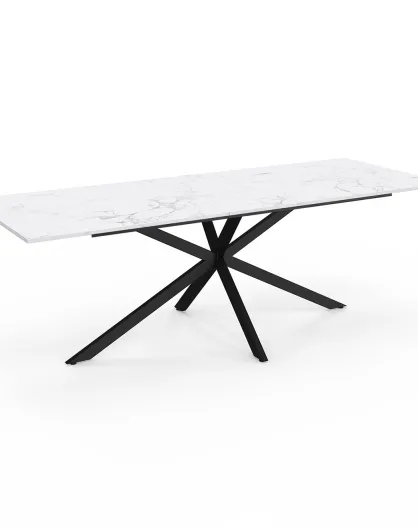 Table à manger extensible Spider effet marbre blanc/pieds noirs - 200/240x90x75.5 cm