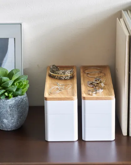 Boîte à accessoires à 3 niveaux avec couvercle blanche - 24x8x11.5 cm