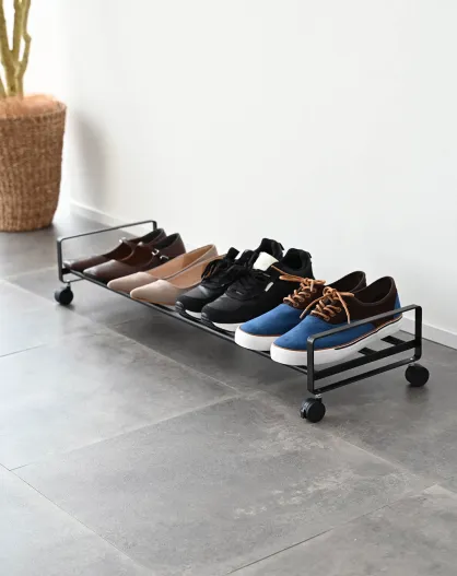 Etagère à chaussures avec roulettes noire - 83.5x27.5x14.5 cm