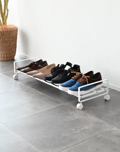 Etagère à chaussures avec roulettes blanche - 83.5x27.5x14.5 cm