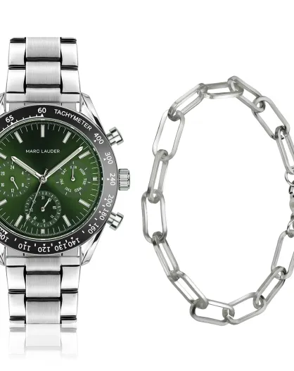 Set Montre & Bracelet Homme Lisbon en Acier argenté