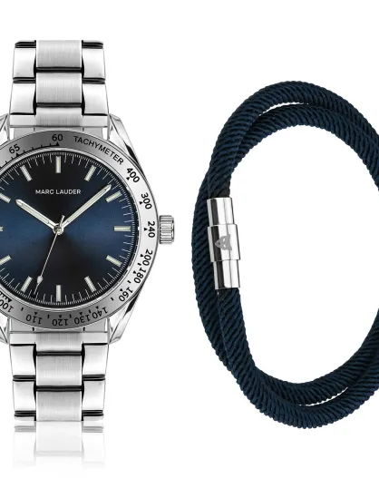 Set Montre & Bracelet Homme Helsinki en Acier argenté/noir