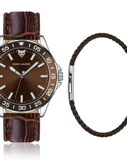 Set Montre & Bracelet Homme Ljublijana en Cuir effet croco marron